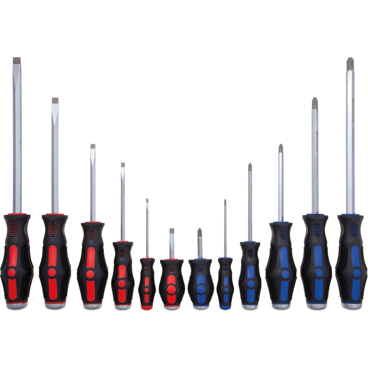 Screwdriver set with chrome vanadium molybdenum steel blade and non-slip two-component handle, consisting of 12 pieces.